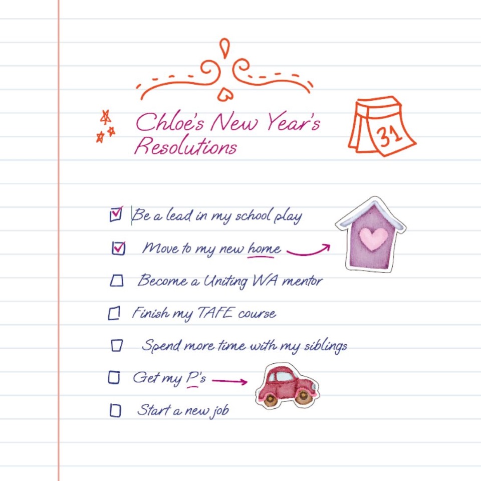 New Year’s resolutions from Uniting WA Family Group Home participant, Chloe.
